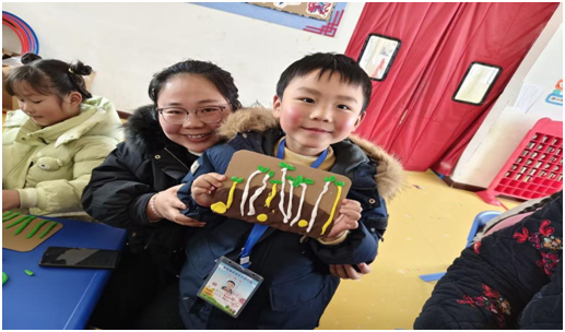 活动中,孩子们和妈妈齐动手,点、画、剪、卷、粘,一朵朵“鲜花”、一顶顶“帽子”、一株株“植物”、一只只“小动物”在大手和小手中栩栩而生。然后孩子们把做好的作品献给自己的妈妈,提前祝妈妈节日快乐,并表达感恩之情。