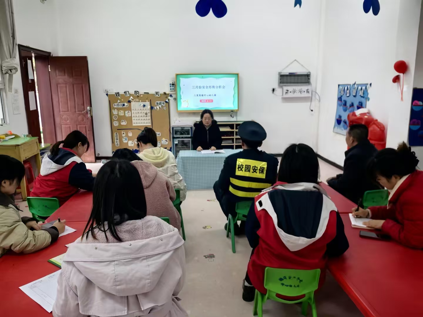 会上安全负责人对近期幼儿园安全工作进行了全面梳理,从日常的门禁管理、设施设备安全检查,到幼儿活动组织中的安全防护,都进行了详细汇报。对当前幼儿园安全工作存在的隐患,教职工们积极建言献策,共同商讨解决方案。