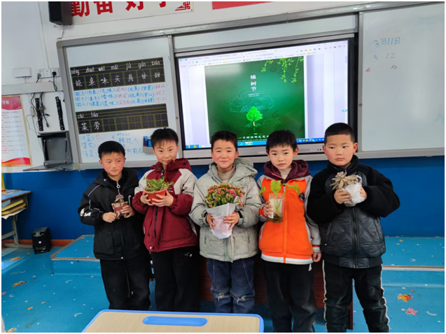 为了让植树节更加贴近生活,学校结合“植树节”和“学雷锋纪念日”,倡导全体师生积极参与植树活动。在老师的带领下,同学们在校园内和大树“浇”朋友,修剪枝叶、清理杂草等,并亲手种下一棵棵小树苗。这不仅让他们感受到了园丁的辛苦,也增进了与自然之间的亲密接触。通过亲身参与,孩子们更加深刻地理解了环境保护的重要性。各班还设立了“植物角”,同学们自愿将家里绿色植物盆景带进班,陈列到“植物角”进行养护,并认识了解其他同学的植物名称,绿植的习性以及养护知识,为绿植制作“养护卡”,为班级增添一份绿色,既美化了班级环境,也让学生们从中获得了成长与进步。