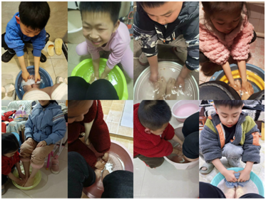活动伊始,各年级根据学生的年龄特点,开展了各具特色的实践任务。一年级的小朋友们用最质朴的方式表达对妈妈的爱——为妈妈打一盆热水洗脚。小小的身影,认真地端着水盆,稚嫩的双手轻轻揉搓,妈妈们脸上洋溢着幸福的笑容。孩子们通过这一简单的举动,真切地感受到了妈妈平日的辛劳。