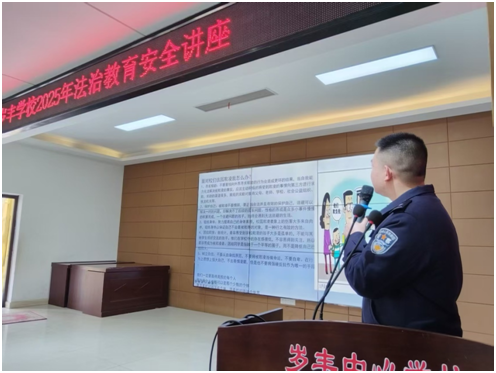 本次讲座有幸邀请到了我校法治副校长——西城派出所吴照辉警官,他凭借丰富的实践经验和扎实的专业知识,为岁丰学校的同学们带来了一场生动且深刻的法治教育盛宴。