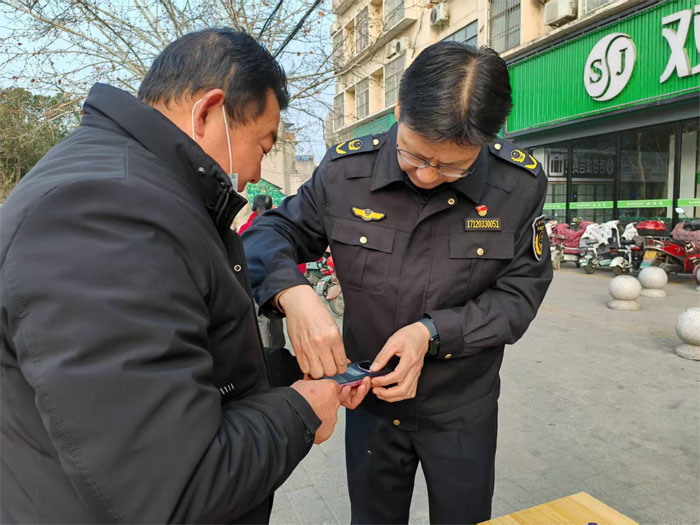 南郊市场监管所开展“手机变砝码”计量惠民活动,对消费者随身携带的手机进行称重,加贴统一制式的重量标签。