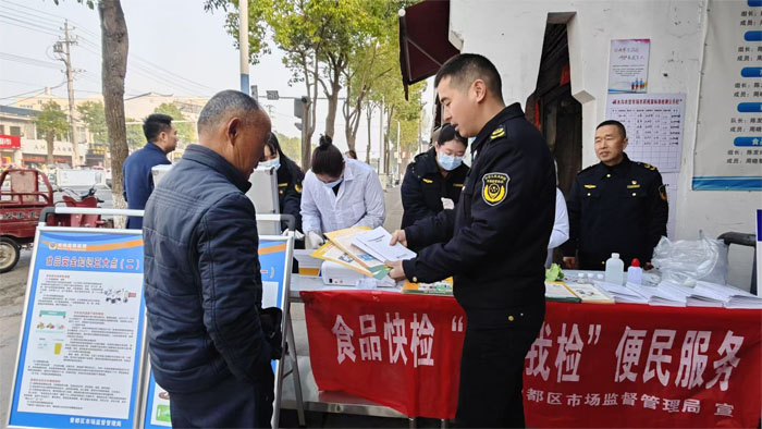 洛阳市场监管所开展食品安全快速检测和“手机变砝码 计量惠民生”活动,普及食品安全和计量法律法规知识。