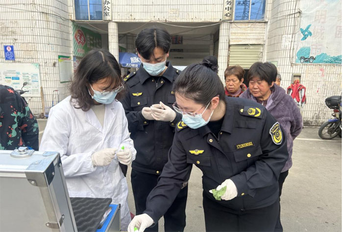 城北市场监管所开展“食品安全你点我检”开放日活动,把“检测室”搬到市场,对食用农产品进行快速检测。