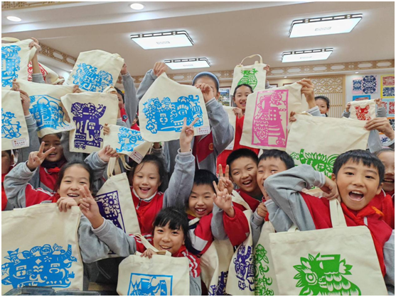 剪纸课上孩子们自己设计的文创手袋