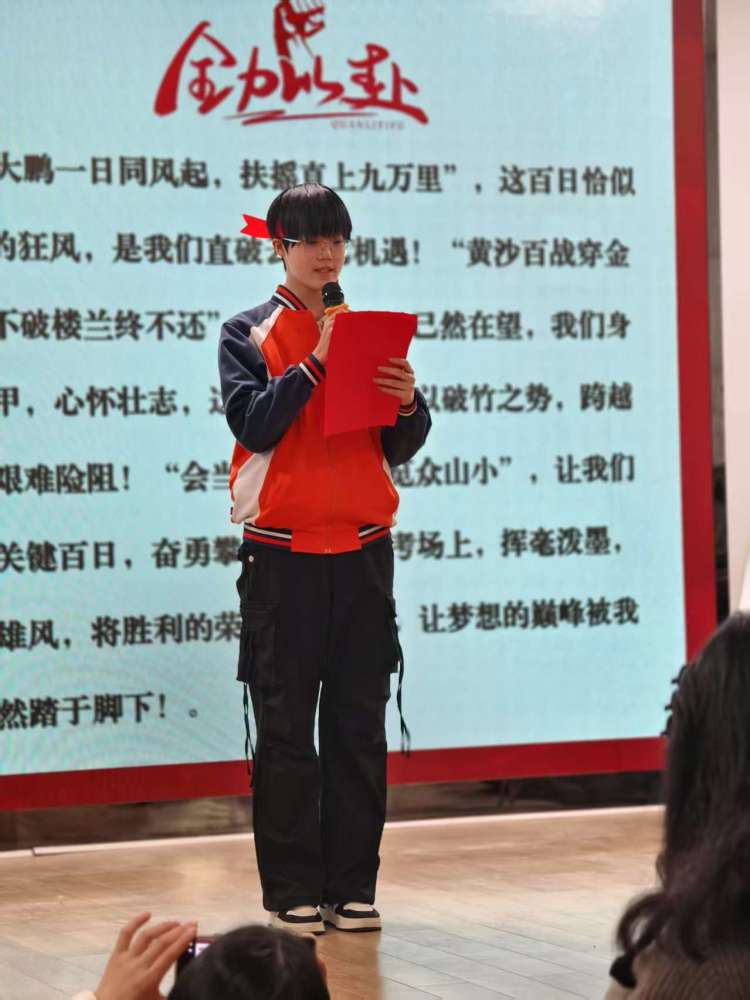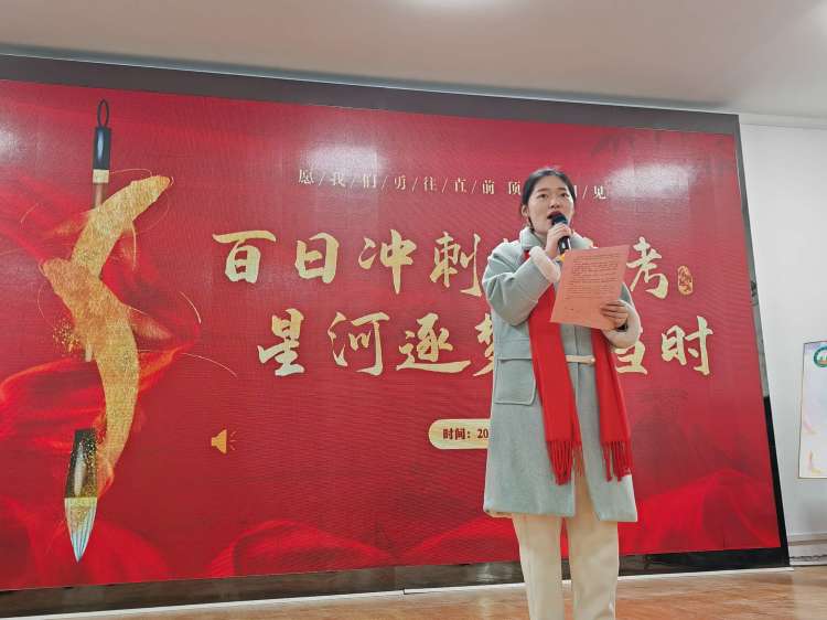 十年作舟,百日竞渡,校长罗凯号召全体师生同心,再鼓干劲儿,明确目标,增强动力;科学规划,张弛有度;清晰认知,掌控情绪,奋战最后100天! 他还激励大家:用一百天的拼搏,换一生无悔;用一百天的汗水,赢一片星辰大海!罗校长的殷切嘱托,字字铿锵,让同学们信心倍增,士气高昂。