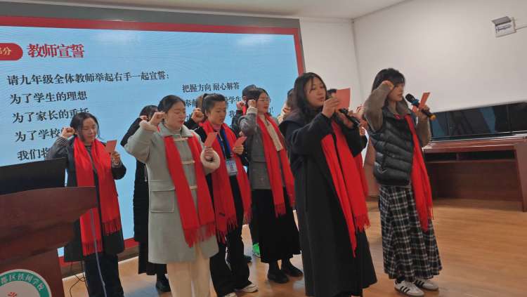 誓言铮铮,师心灼灼!九年级教师集体宣誓。誓言如雷,气吞山河!这不仅是青春的承诺,更是决胜中考的磅礴力量!九年级全体学生庄严宣誓。