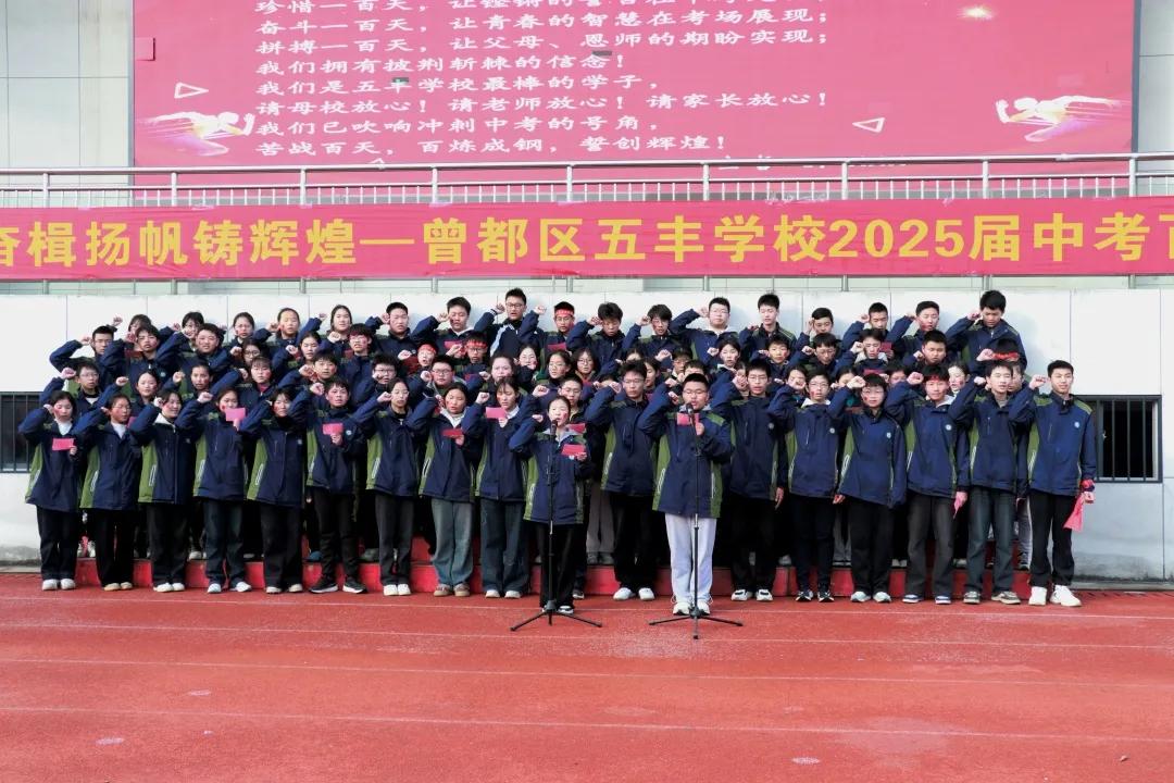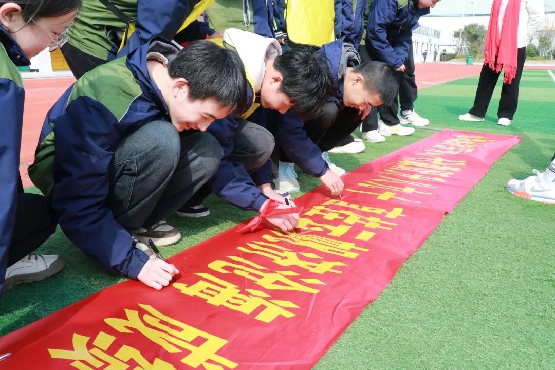 同学们在班级横幅上郑重签下自己的名字,铭刻青春的誓言。一个个鲜明的志向、一笔笔坚定的笔迹、一张张昂扬的面孔,构成了五丰最亮丽的风景。