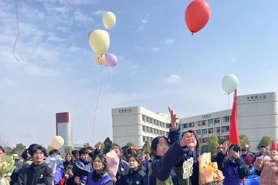 五彩气球缓缓升空,它承载着梦想与希望,相信美好的祝福将会随之绽放,助力五丰学子走向未来的灿烂征途。