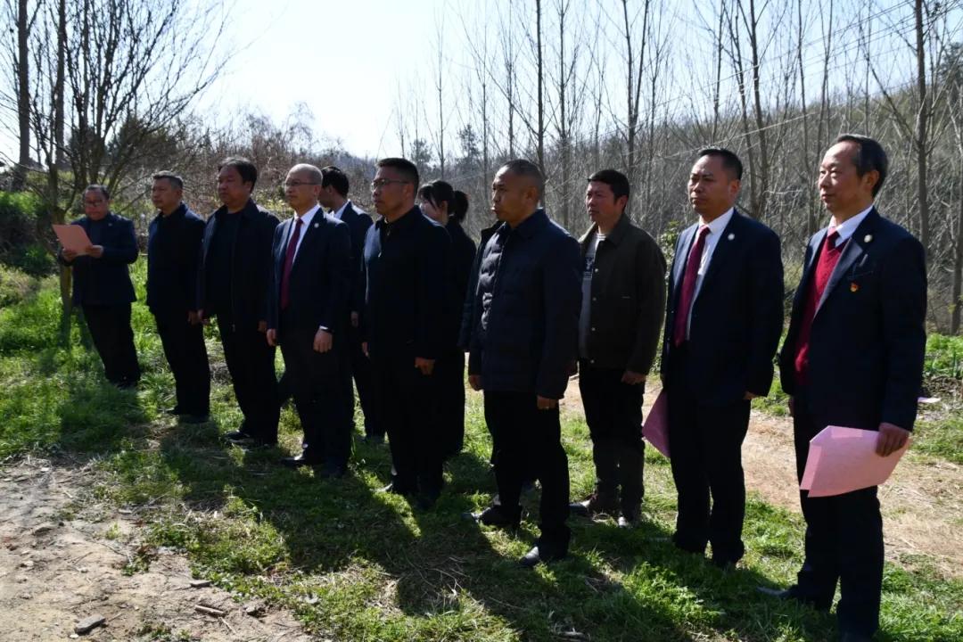 在随县澴潭镇涢阳村佛垣寺办学旧址,梁勇与蒋玉铭共同为“佛垣寺办学纪念碑”揭幕,沈德勇、蒋玉铭、涢阳村党支部书记陈卓先后致辞。