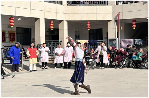 活动伊始,少先队员们为老人们献上一场精心准备的文艺演出,节目形式多样、创意十足:充满童趣的《十二生肖拜大年之祥蛇献瑞》拉开序幕,孩子们身着生肖服饰,用活泼的舞姿传递新春祝福;诗朗诵《珍贵的教科书》以稚嫩而坚定的声音讲述红色故事,《月光下的中国》《诗意中国》则用诗意的语言描绘山河壮美,抒发爱国情怀。舞蹈节目更是点燃现场气氛,《赤伶》展现国风雅韵,《天边》的悠扬旋律与轻盈舞步令人沉醉,与展现四季流转的《春夏秋冬》赢得阵阵掌声。