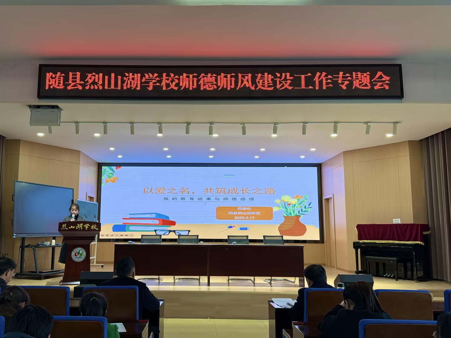 会议强调,师德师风是教育事业的灵魂和根基,是教师的立身之本和发展之道。2025年是随县教育师德师风建设年,烈山湖学校的师德建设主题为“立师德、铸师魂、提师能,践行教育家精神,争做新时代大先生”。他要求老师们应当立师德:以德润身,筑牢教育之本; 铸师魂:以信仰为灯,点亮教育之光;提师能:以创新为翼,赋能教育未来;践行教育家精神:做新时代的“大先生”。全体烈山湖教师当以此次师德师风建设为契机,从今天做起、从细节做起,立师德、铸师魂、提师能,用爱心浇灌希望,用智慧启迪心灵,用责任书写担当,共同谱写立德树人的新篇章!