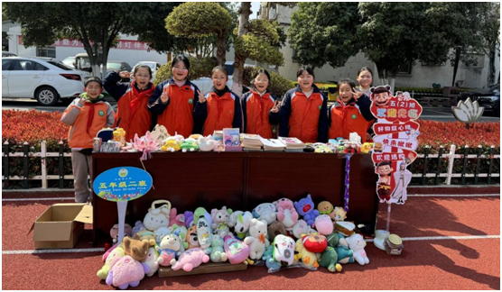 旧物新生,焕发公益价值。活动现场,各班摊位围绕足球场整齐排列,琳琅满目的义卖品令人目不暇接:精致的文具、有趣的课外书、可爱的玩偶,还有自己种植的多肉…… 摊位前,“小店长”们热情吆喝,有的同学耐心介绍商品,有的负责收银记账,分工明确,配合默契。热闹的“爱心集市”还吸引了教师的参与,每一位师生都在认真挑选心仪物品,欢声笑语回荡在操场上。