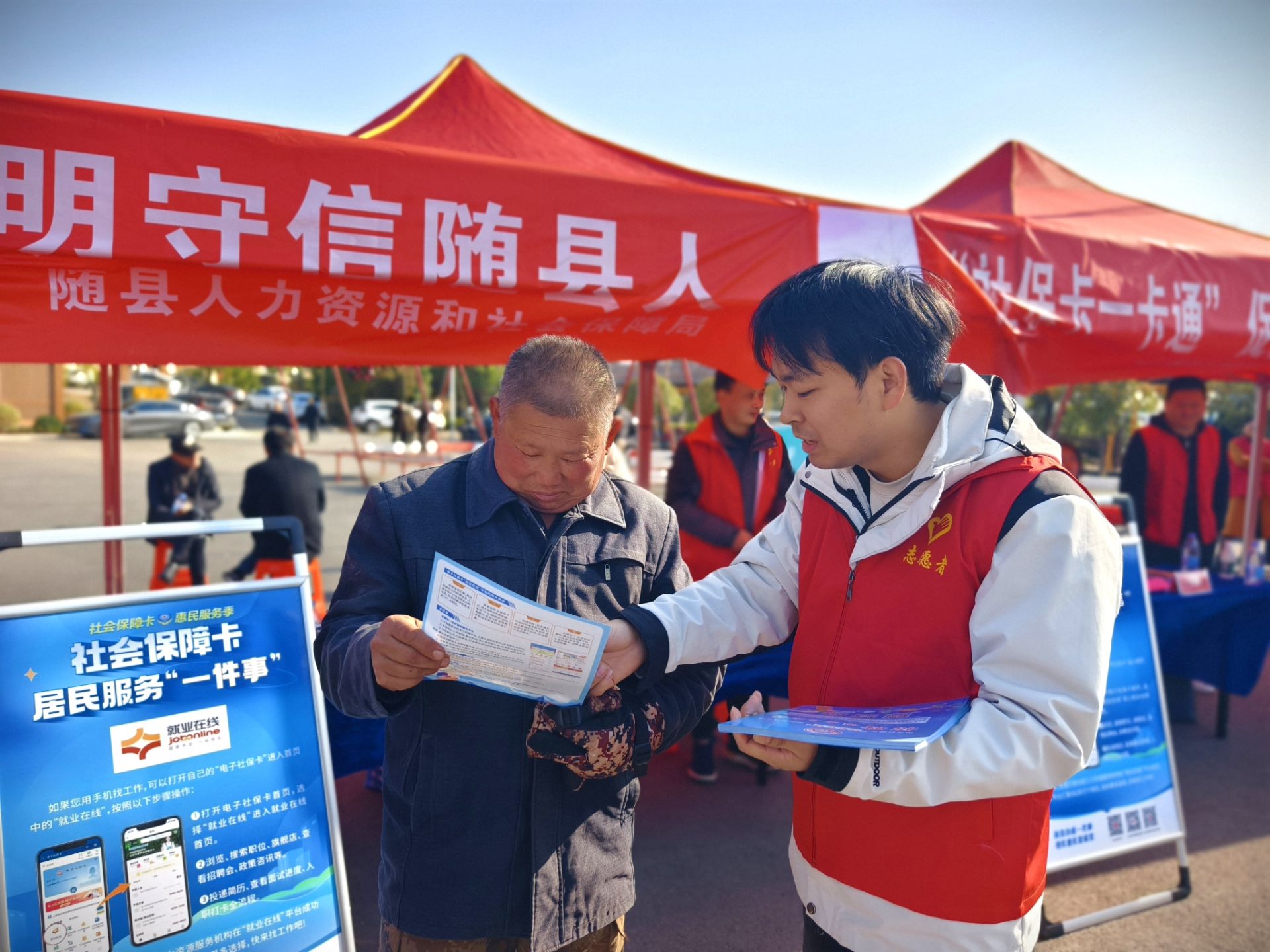 随州新闻网讯 (通讯员杜秋)阳春三月,桃花盛开。日前,随县2025年“惠民政策进万家”暨“春风行动”现场招聘活动走进随县尚市镇桃花节,为求职者送岗位、送服务、送政策、送温暖,帮扶各类重点就业群体就近就业。随县人社局信息中心以招聘会为契机,同时开展了一场别开生面的社保卡宣传活动,帮助群众真正知卡、懂卡、用卡,让这一重要民生保障工具更好地服务大众,打造电子社保卡优质服务品牌,助力就业服务提效提质。