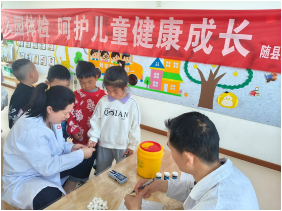 随州新闻网讯 (通讯员冯秀芹)为切实强化儿童健康管理工作,全方位保障幼儿健康成长,3月24日上午,吴山镇卫生院到镇中心幼儿园为全体幼儿进行了一次全面的健康体检。体检包括身高体重、心肺听诊、口腔检查和血常规检查,紧密围绕幼儿生长发育的关键指标展开。