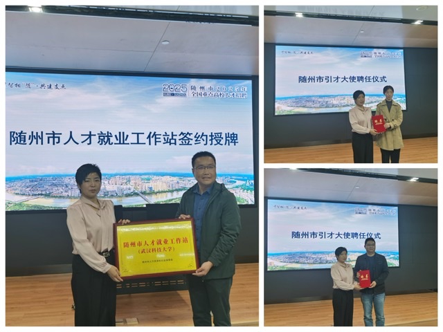 为进一步深化市校合作,活动现场,随州市与武汉科技大学签订人才合作战略协议,双方约定在人才招聘、人才交流服务、高校合作等方面加强合作交流,实现互动共赢、共同发展,并为武汉科技大学授牌“随州人才就业工作站”、为武汉科技大学教师代表颁发“随州市引才大使”聘书,为随州发展提供持续的人才支撑。