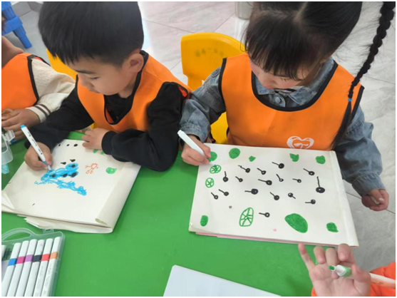 孩子们在这段时间里见证了小蝌蚪的奇妙蜕变,它们的每一次变化都会让孩子们惊喜不已,不禁想用画笔来把这份独特的观察记录下来,让这份美好永远保存。
