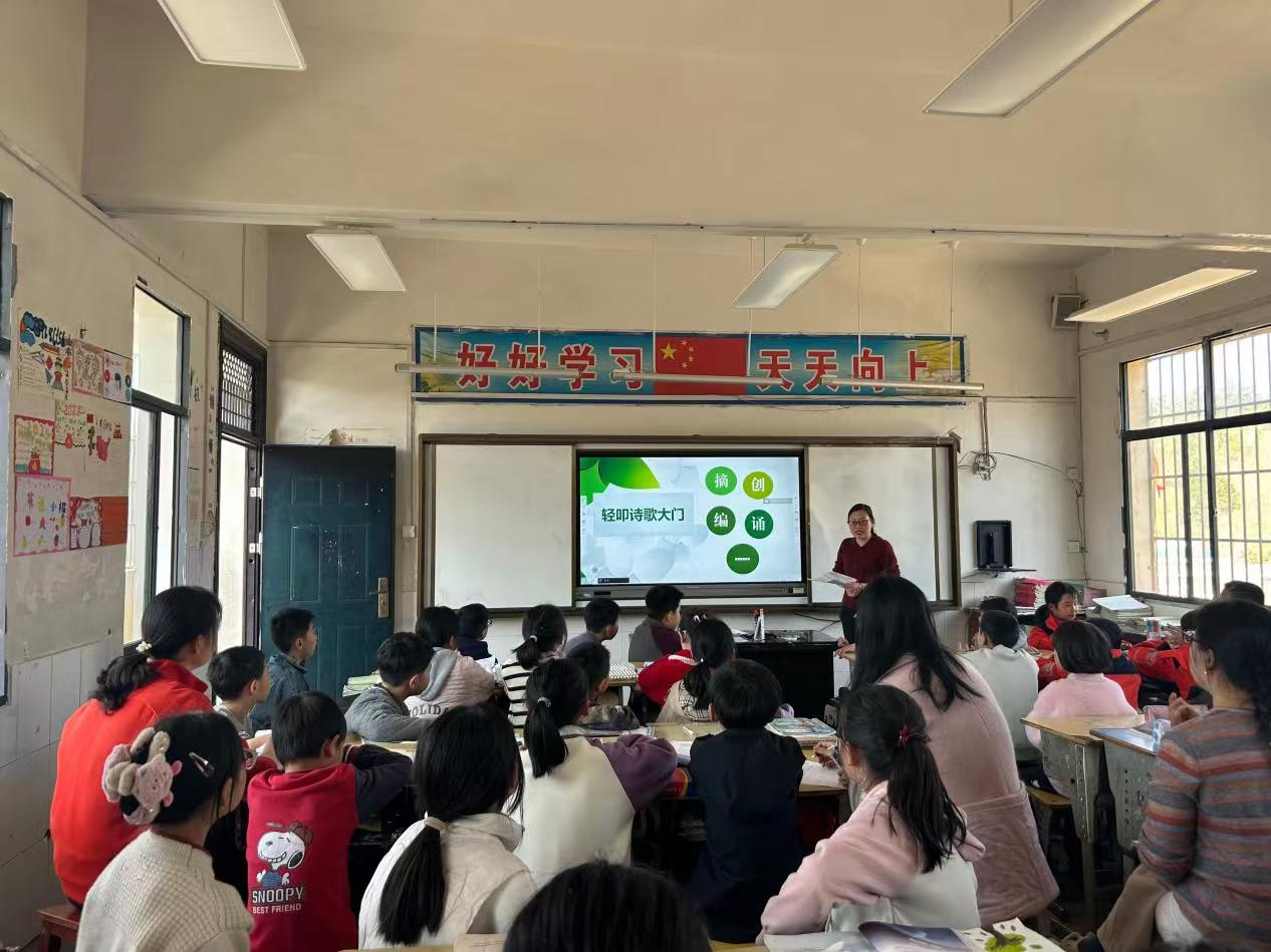 为了突出工作室的引领示范作用,主持人罗建华老师和工作室成员曾继红老师结合四年级下册第三单元的综合性学习“轻叩诗歌大门”进行课例展示。两位老师立足学科本位,拓展学习领域,借助“跨学科学习”这一载体,引导学生在综合性学习活动过程中运用多种学科知识来解决活动的实际问题。教师适时、适度的给予学生一定的指导与帮助,通过打造情境场、活动链、生活圈,激发他们的学习热情,充分发挥其自主性和创造性,提升核心素养。教师按照任务框架循序渐进开展活动,达成“学—评—教”一致的目标,最终实现学科与生活的融合,既关注过程,又生成学习成果,有效地促进综合性学习活动的良性发展。