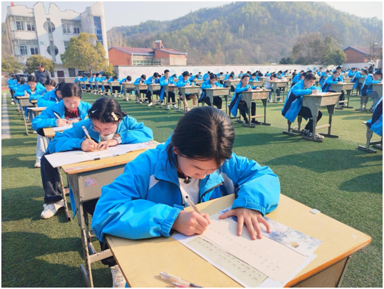 活动现场,秩序井然,参赛者们满怀激情,专注投入。老师们尽显师者风范,运笔流畅自如,笔下的字或刚劲有力,或飘逸洒脱,每一笔都蕴含着深厚的文化底蕴和对书法艺术的热爱。学生们也不甘示弱,个个坐姿端正,神情专注,沉浸在书法的世界里,用笔墨舒展汉字之美,用心传承优秀中华文化。