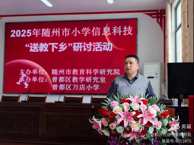 随州新闻网讯 (通讯员宋虹霞)为促进城乡教育均衡发展,整合教育教学资源,“把脉”课堂教学,助力“双减”落实,充分发挥名师引领、示范和辐射作用,大力提高课堂教学效果,3月27日,由随州市教育科学研究院主办、曾都区教学研究室承办的2025年随州市小学信息科技“送教下乡〞研讨活动于在曾都区万店小学举行。