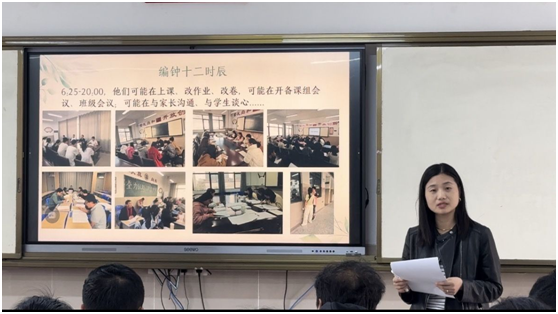 编钟初级中学九年级年级主任孙小敏分享经验。该校九年级有485名学生42位教师各展其能。教学上,备课组协同推进同步教学,作业、考试管理精细,有效提升教学质量。老师们全程陪伴学生,从晨读至晚自习,还通过谈心、家访给予精神关怀,助力学生备考。