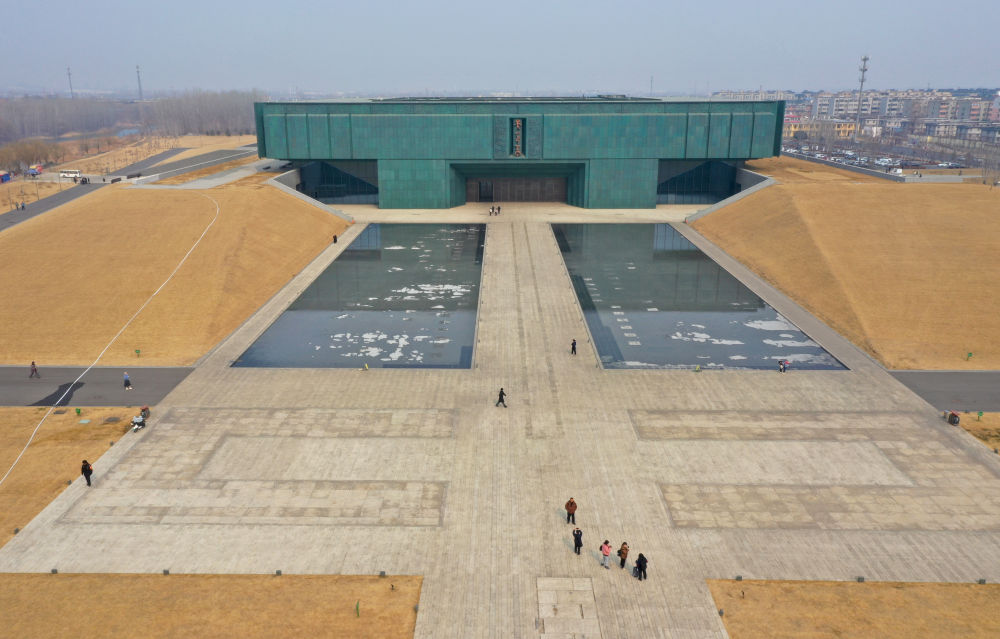 “商邑翼翼,四方之极。”位于太行山东麓的河南安阳小屯村一带,是殷墟遗址所在地。三千多年前,繁盛的城市文明、举世瞩目的文字文明以及高度发展的手工业等,共同构筑了早期中国的华彩篇章。2024年2月,殷墟博物馆新馆正式开馆,成为首个全景式展现商文明的国家重大考古专题博物馆(2025年2月21日摄,无人机照片)。