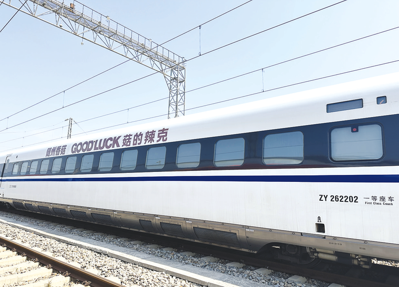 作为“随州香菇 香飘世界”的系列宣传之一,此次高铁宣传选择了客流量比较大的两条线路,复兴号G2386宜昌-上海线与和谐号G1528襄阳-北京线,日均载客量超3500人次。在车体上印有明显的“随州香菇GOODLUCK菇的辣克”冠名字样,车厢内的头枕巾、桌板贴、行李架彩贴、车厢出入口画框等均有“随州香菇”的宣传字样,LED显示屏实时滚动品牌标语。此外,每站的语音播报均会推介“随州香菇”。