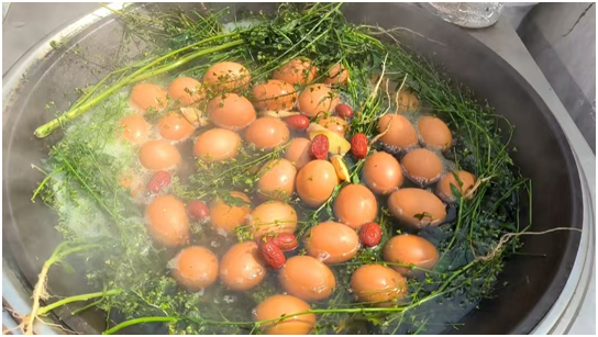 活动伊始,老师们带着孩子们来到幼儿园的种植园,开启寻找芥菜之旅。孩子们好奇地蹲下,仔细观察,在老师指导下,小手握住芥菜,轻轻用力拔起,不一会儿,小篮子就装满了收获。回到教室,老师一边煮鸡蛋,一边给孩子们讲述着三月三吃芥菜煮鸡蛋“除百病”的美好传说,孩子们瞪大眼睛,听得津津有味。