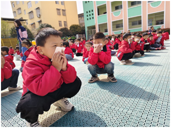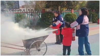 上午10:00,消防警报铃突然响起,各班教师迅速做出反应,引导幼儿用湿毛巾捂住口鼻,低头弯腰从相应安全出口有秩序、有组织的撤离,全园263名幼儿共用时2分48秒全部撤离到幼儿园的安全地带。后勤人员、保安、教师、幼儿认真学习灭火器的使用技巧和方法,并亲自动手操作使用灭火器现场灭火,让全体师幼掌握了遇到突发事件的应变能力、自救、逃生和自我保护的方法,真正做到警钟长鸣,防患于未然。