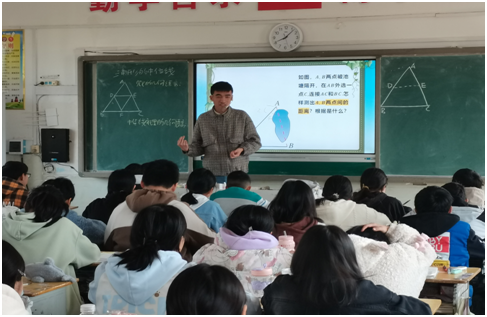洪山一中的费云瑞老师以《三角形的中位线》为课题,通过问题链驱动学生探究,他从实例引入,直观感知中位线的性质,层层推导定理,并巧妙设计“一题多解”,激发学生发散思维,充分体现“做中学”的教学理念。洪山二中的季伟老师则呈现了一节数学名师视频观摩课,讲解了平行四边形复习以及函数知识,引导教师学习先进教学策略,优化课堂实践。