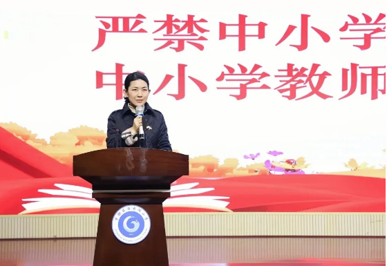 白云湖小学校长林海艳强调了师德是教师最厚重的底色,她指出,师德失范案例给教师们敲响了警钟,教师要做到防微杜渐,坚守道德的底线,不越教育红线,要以规范为基,以德立身,做学生健康成长的引路人。