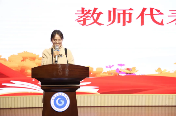 青年教师代表周新月老师表示,没有爱就没有教育,教师要拥有仁爱之心。教育是一个不断发展的领域,只有不断充实自己,才能更好的满足学生的需求,用师德师风的光芒照亮每一个学生的未来。周老师的话语引发了全场共鸣,展现了新时代教师以德润心、以爱育人的教育情怀。