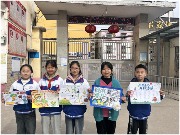 为让学生亲近自然,感受春天的美好,一、二年级组织了踏青活动,用相机定格美丽的春景。三、四年级开展的清明美食手抄报活动也如火如荼,一张张手抄报设计精美、内容丰富,既介绍了美食的制作方法,又融入了清明节的文化内涵,展现了同学们对传统文化的独特理解。五、六年级的同学们则通过制作英雄名片,表达对革命英雄的敬仰,一张张小小的名片,承载着同学们对革命先烈的缅怀与敬意。
