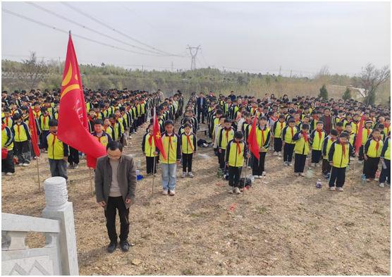 组织3-6年级全体师生前往澴潭烈士陵园,开展了庄重而肃穆的清明节祭扫活动。