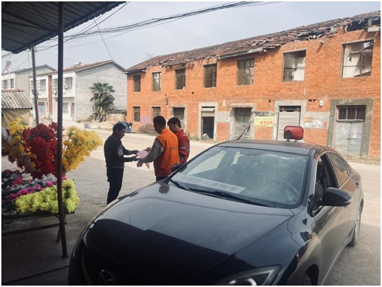 社工站和林业站的工作人员开着森林防火宣传车挨家挨户的发放森林防火宣传单页,并耐心细致地讲解森林防火的相关知识。在宣传过程中,社工和工作人员着重向村民强调了森林防火的重要性,普及了“清明祭祀用火十不准”等知识,介绍了森林火灾的危害以及扑火的正确方法。同时,还结合具体的森林防火相关条例和典型案例,向村民们敲响警钟,提醒大家在清明节祭祀时要严格遵守相关规定,文明祭祀、安全用火。