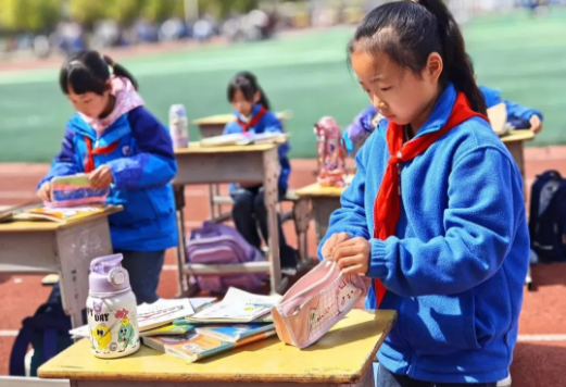 “整理小达人”们有条不紊地将书本、文具分门别类,整齐有序地放进书包。
