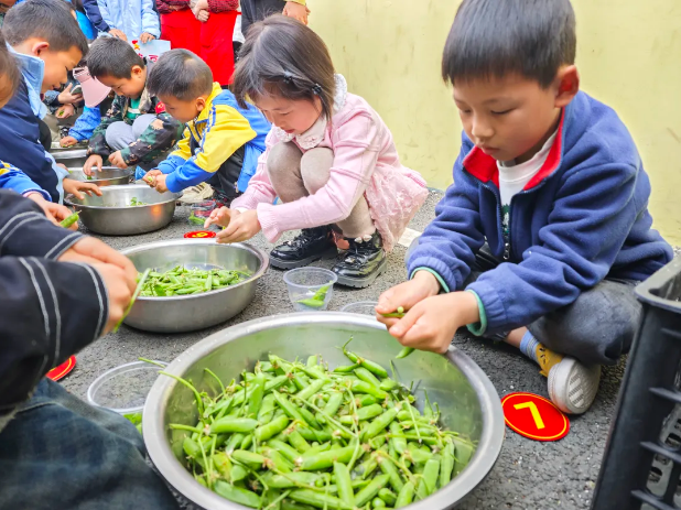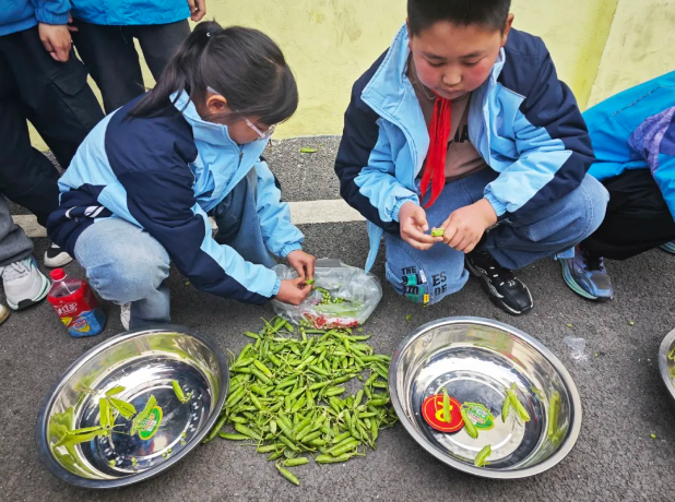 别看他们年纪小,干起活来可不含糊!“剥豌豆小能手” 们动作麻利,不一会儿就剥出了一颗颗光滑、干净的豆子。