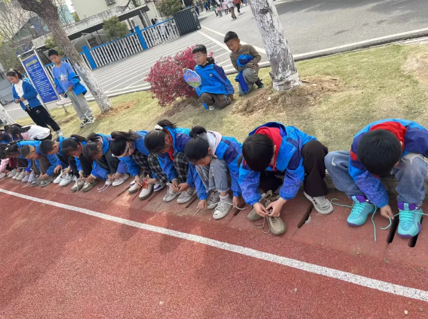 “系鞋带小达人”们手指灵活,鞋带在他们手中仿佛有了生命,转眼间就变成了漂亮的蝴蝶结。