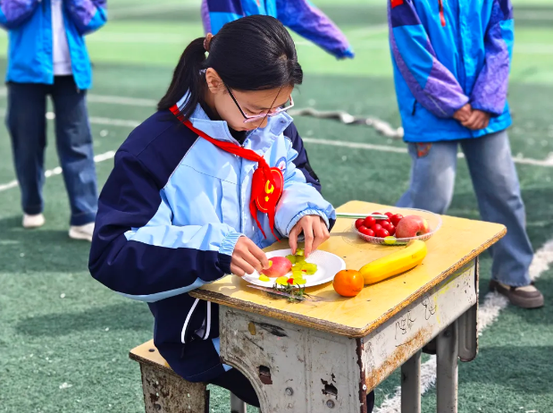队员们发挥自己的想象力,通过切、剥、卷、穿等将各种水果巧妙地组合在一起,呈现出一个个精美的水果拼盘作品。