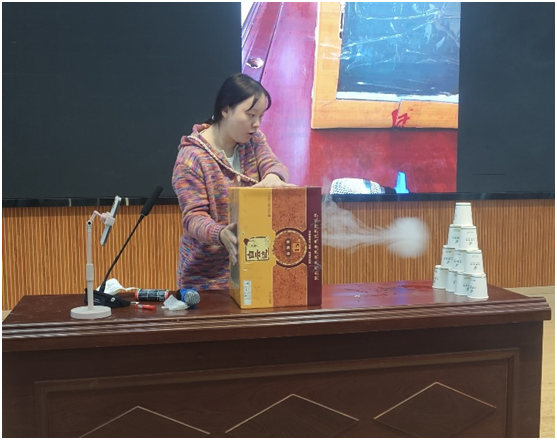 教师组的两位老师带来的水顶乒乓球、空气大炮点燃了同学们对科学探索的渴望,将本次科技展演推向一个新的高潮!