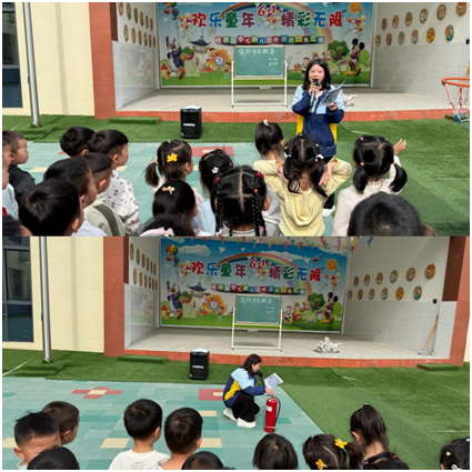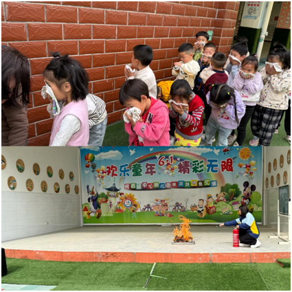 演练前,彭老师通过图片和情景模拟等形式,向幼儿讲解火灾危害、逃生路线及毛巾捂鼻、弯腰前行等自救技巧。随着消防警报响起,全园师生迅速反应,各班教师引导幼儿用湿毛巾捂住口鼻,沿预定疏散路线有序撤离至操场安全区域,全程仅用时2分钟。随后,彭老师现场演示了灭火器的正确使用方法。