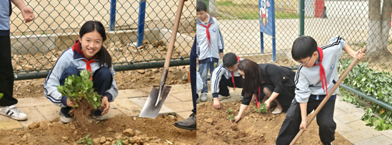与此同时,花卉区也热闹非凡。学生们挑选了形态各异的菊花苗,小心翼翼地栽种到土里。他们有的挖坑,有的扶苗,有的填土,每一步都显得那么认真而细致。菊花苗在春风中轻轻摇曳,仿佛在向学生们致谢。
