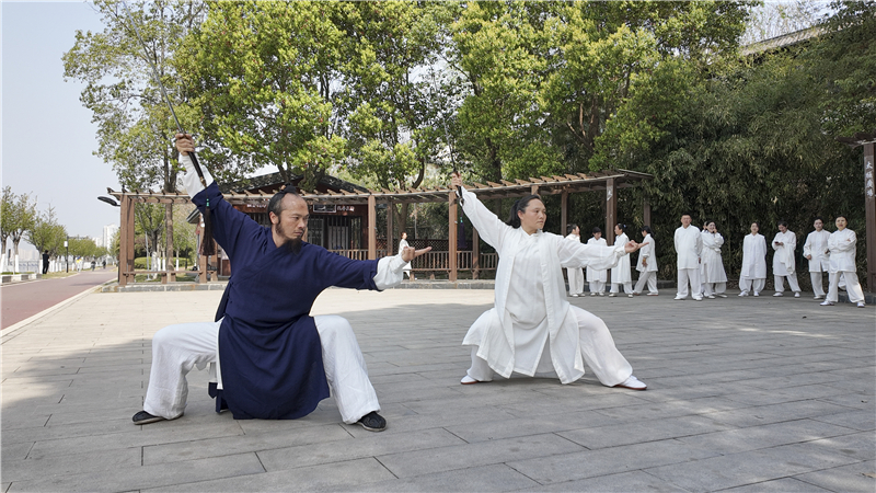 “2014年,我在武当山拜蒋师清为师,研习太极拳法。”太和神韵传统文化生活馆馆长邱文杰介绍道。作为武当三丰派第十六代传承人,她于2023年返乡创建生活馆,开启“武当太极本土化”实践。今年清明假期,邱文杰特意邀请师父来到家乡随州,为学员们开展武当太极拳指导。
