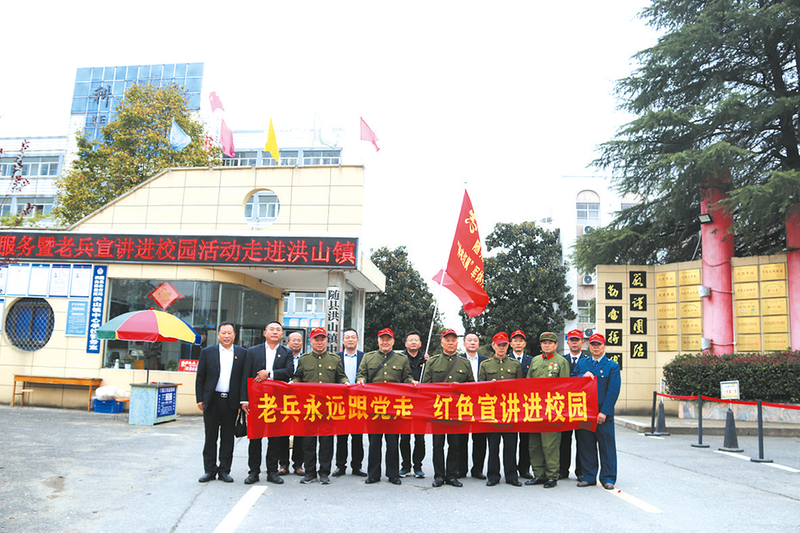 △随州市“神农红枫”志愿服务队走进随县洪山镇第二中学,开展“老兵宣讲进校园”活动