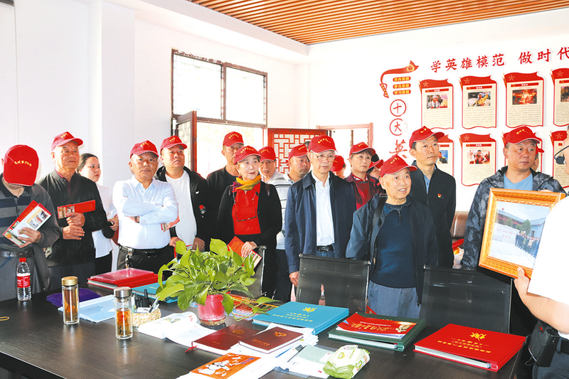△随州市军休老年大学走进随县新街镇河源店,开展老兵宣讲活动。图为参观河源店“老兵之家”