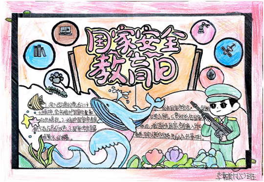 队会结束后,队员们绘制了各式各样的国家安全主题标语、标志等以及主题鲜明、色彩丰富的手抄报,并向家长宣传反间谍举报电话(12339)。队员们在实践中深刻领悟国泰方能民安,家和方可兴邦的道理。