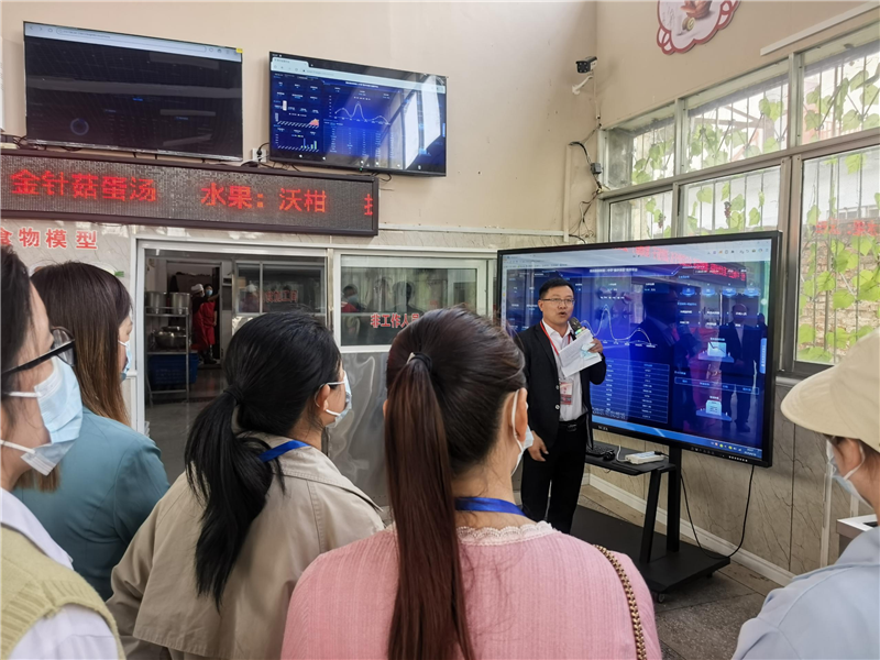 该校副校长戴海鹰重点介绍乐“数字食堂”建设成果。该校“数字食堂”通过“全程可溯、智能服务、互动监督”三大升级,实现食材从采购到加工的全链条溯源管理,引入人脸识别取餐、营养数据分析系统,并开放后厨实时直播,让家长通过手机即可查看餐饮制作流程。
