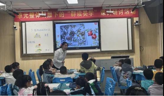“杨萍名师工作室”核心成员徐琼、彭歆越两位教师分别呈现了两节特色鲜明的研讨课。徐琼老师执教《狼牙山五壮士》,以单元整体目标为导向,将革命文化教育与语文要素有机结合。她通过文本精读、群文拓展阅读,引导学生在品味“壮言”“壮行”“壮心”中感受英雄气节,实现语言能力与情感价值观的双重提升,让红色基因在课堂上悄然扎根。彭歆越老师执教《植物妈妈有办法》,针对低年级学生特点创设“科普小讲师”情境,通过趣味朗读、动词梳理、表格归纳等方式,引导学生在观察与模仿中掌握植物传播种子的知识,并通过仿写练习实现语言迁移运用,让语文学习成为探索自然的窗口。