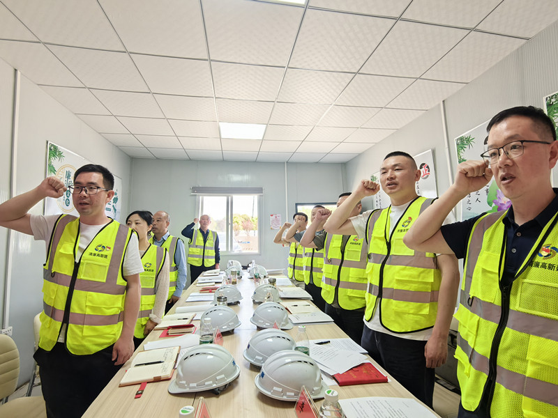 随后,全体党员整齐列队,面向鲜红的党旗,庄重地重温入党誓词。一句句铮铮誓言在工地现场回荡,彰显出大家对党的无限忠诚,也进一步坚定了全体党员爱岗敬业、廉洁从业的信心与决心。