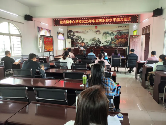随州新闻网讯 (通讯员韩仕国、尹勇)4月18日,殷店镇中心学校组织开展2025年度中高级职称水平能力测试,来自全镇中小学的53名教师参加测试。